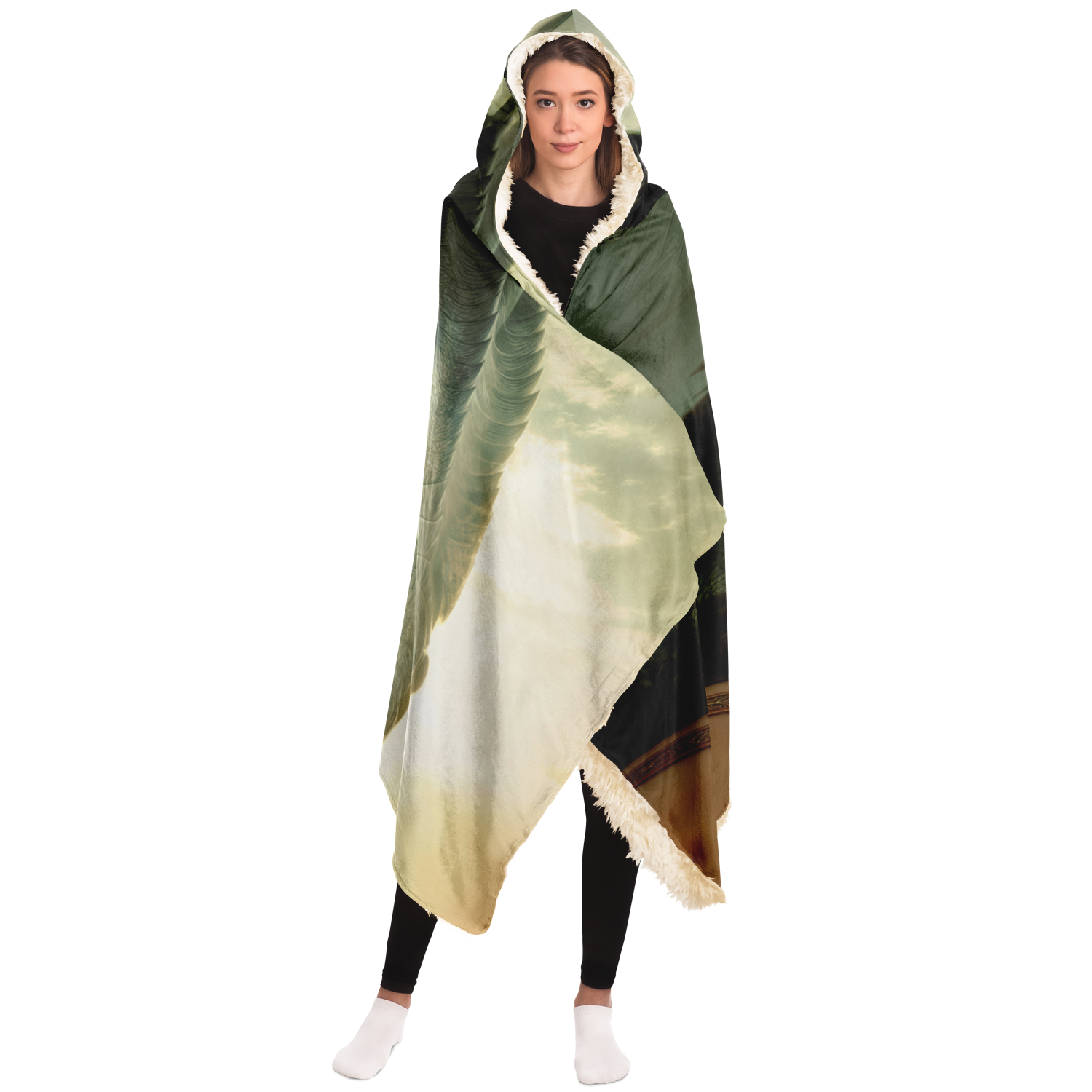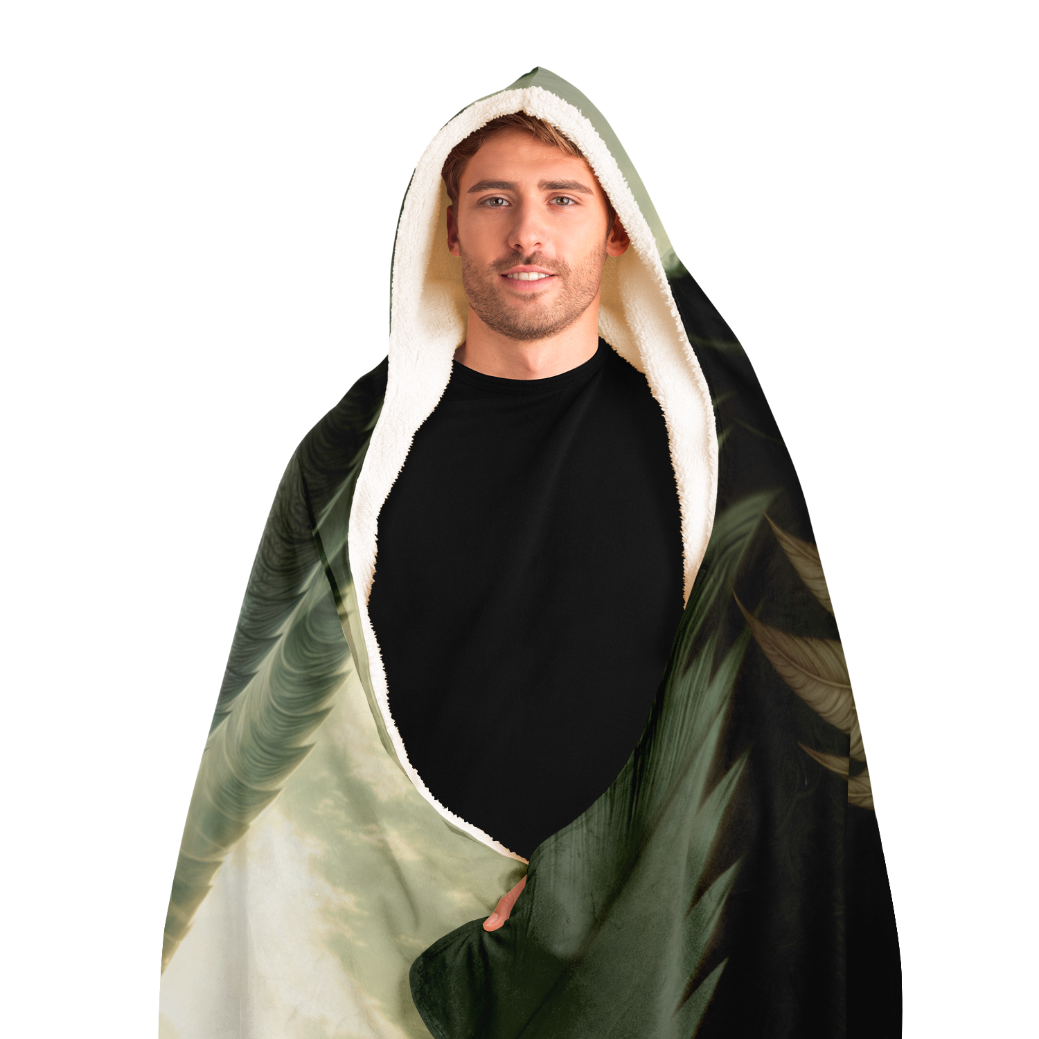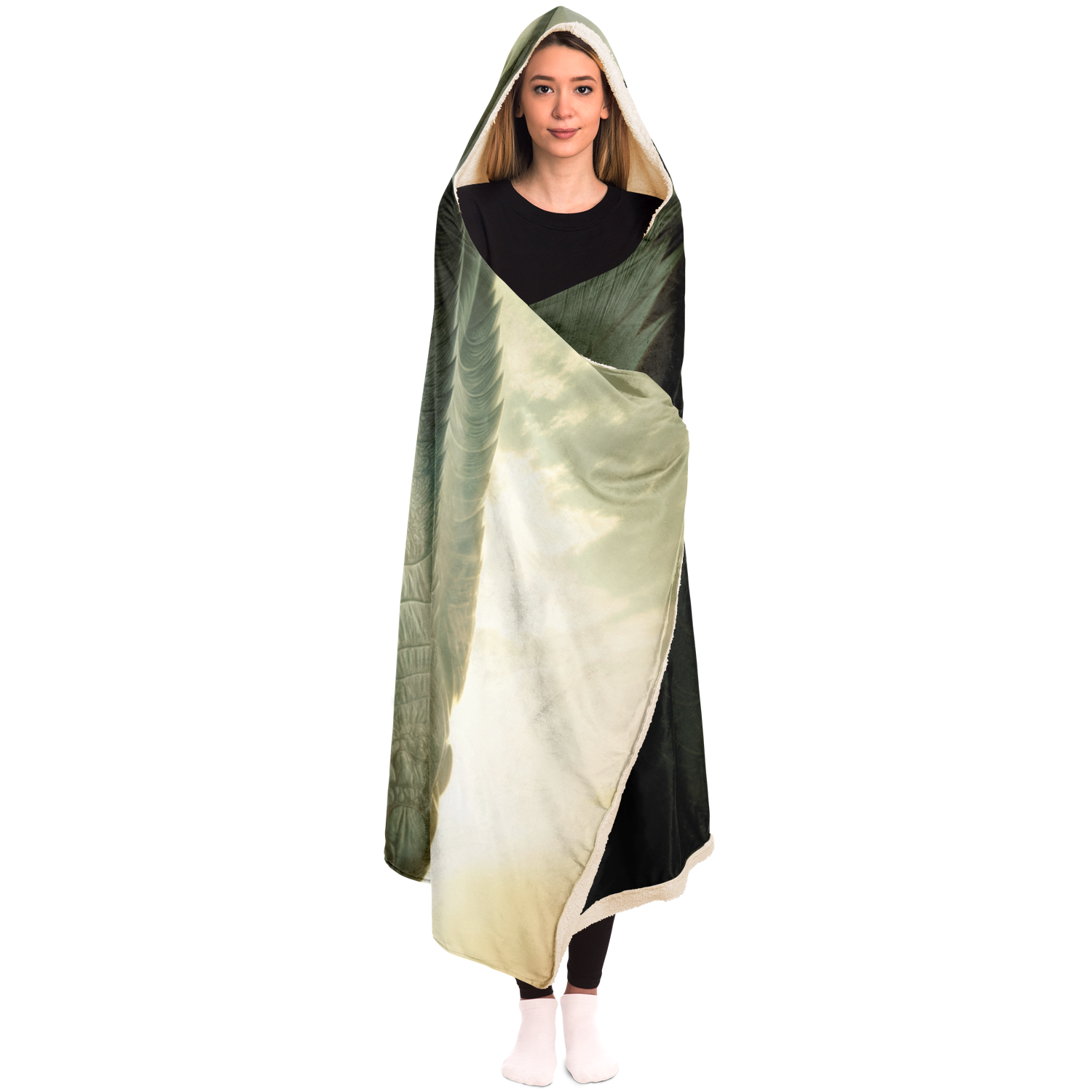 This Dragonseer hooded blanket is crafted from an outer silky smooth micro-mink polyester face. For the inside you can choose from an ultra soft microfiber fleece lining, or a premium plush 100% polyester sherpa lining.