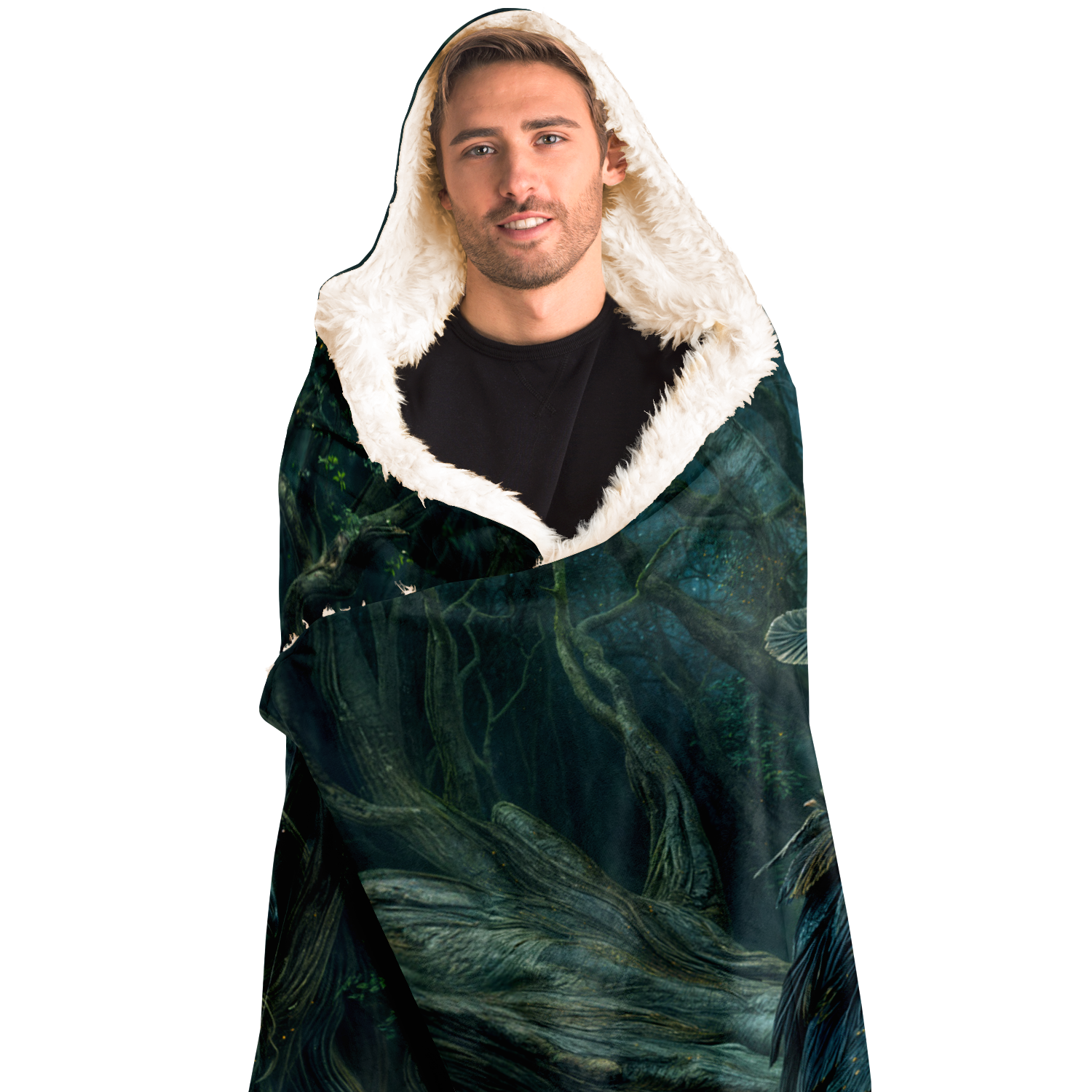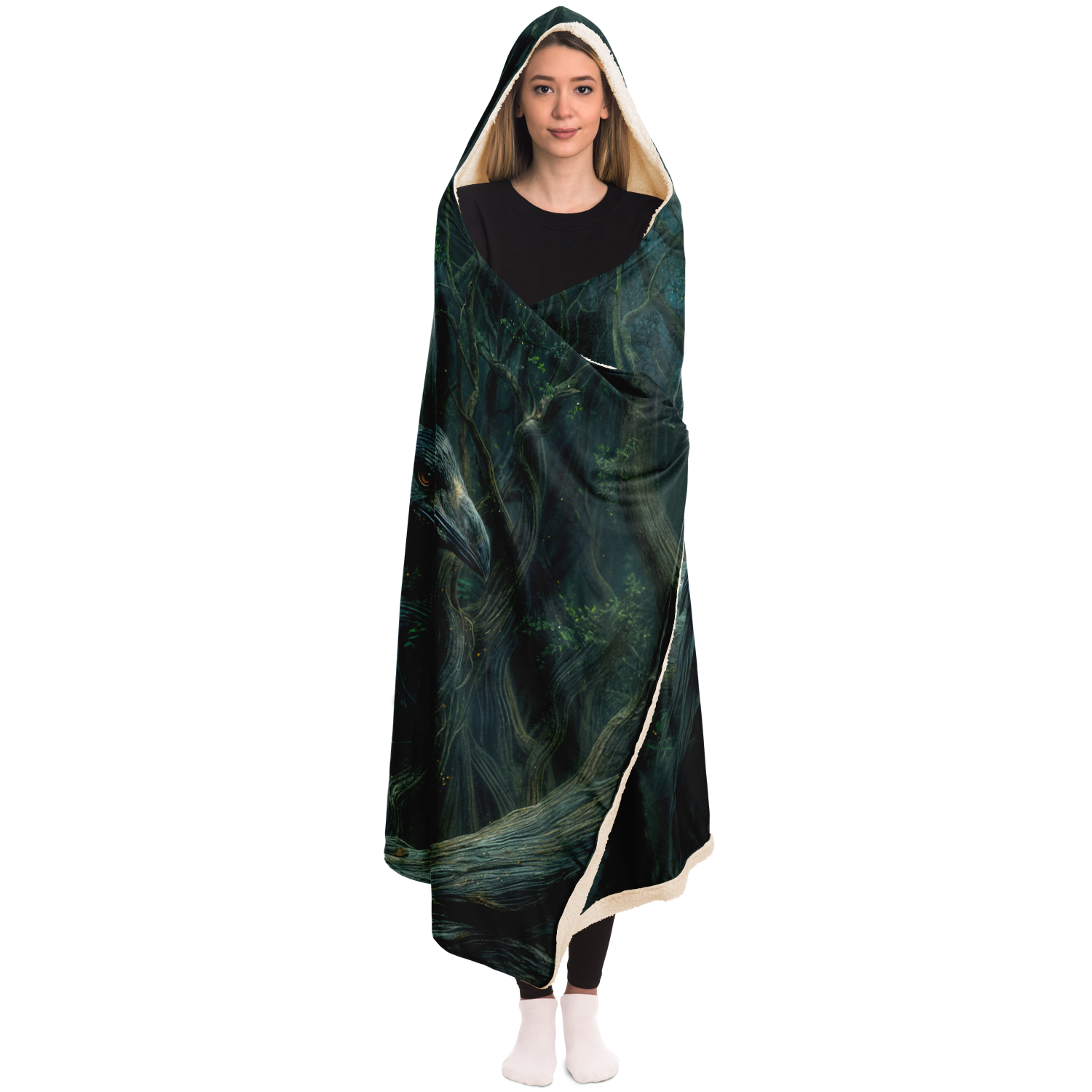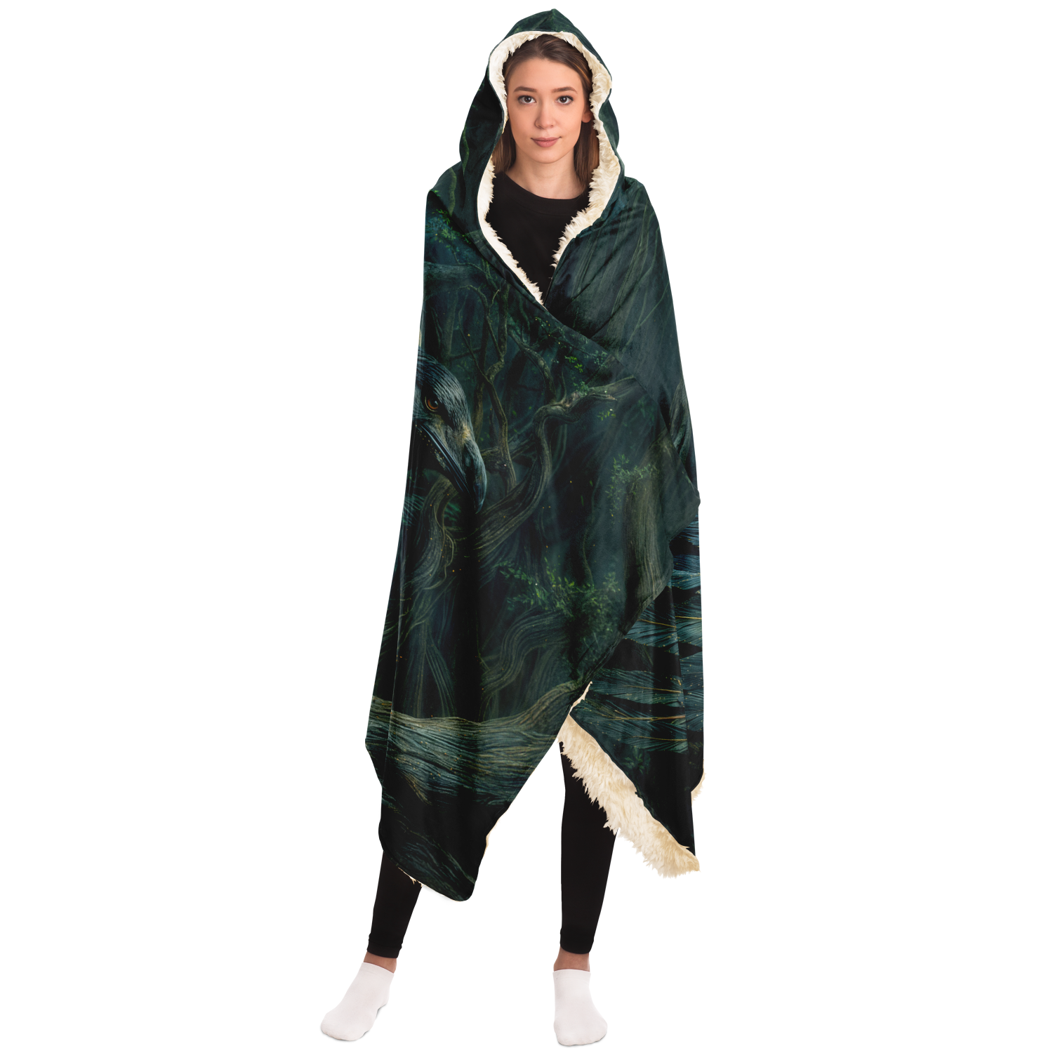 This Lady of The Crows hooded blanket is crafted from an outer silky smooth micro-mink polyester face. For the inside you can choose from an ultra soft microfiber fleece lining, or a premium plush 100% polyester sherpa lining.