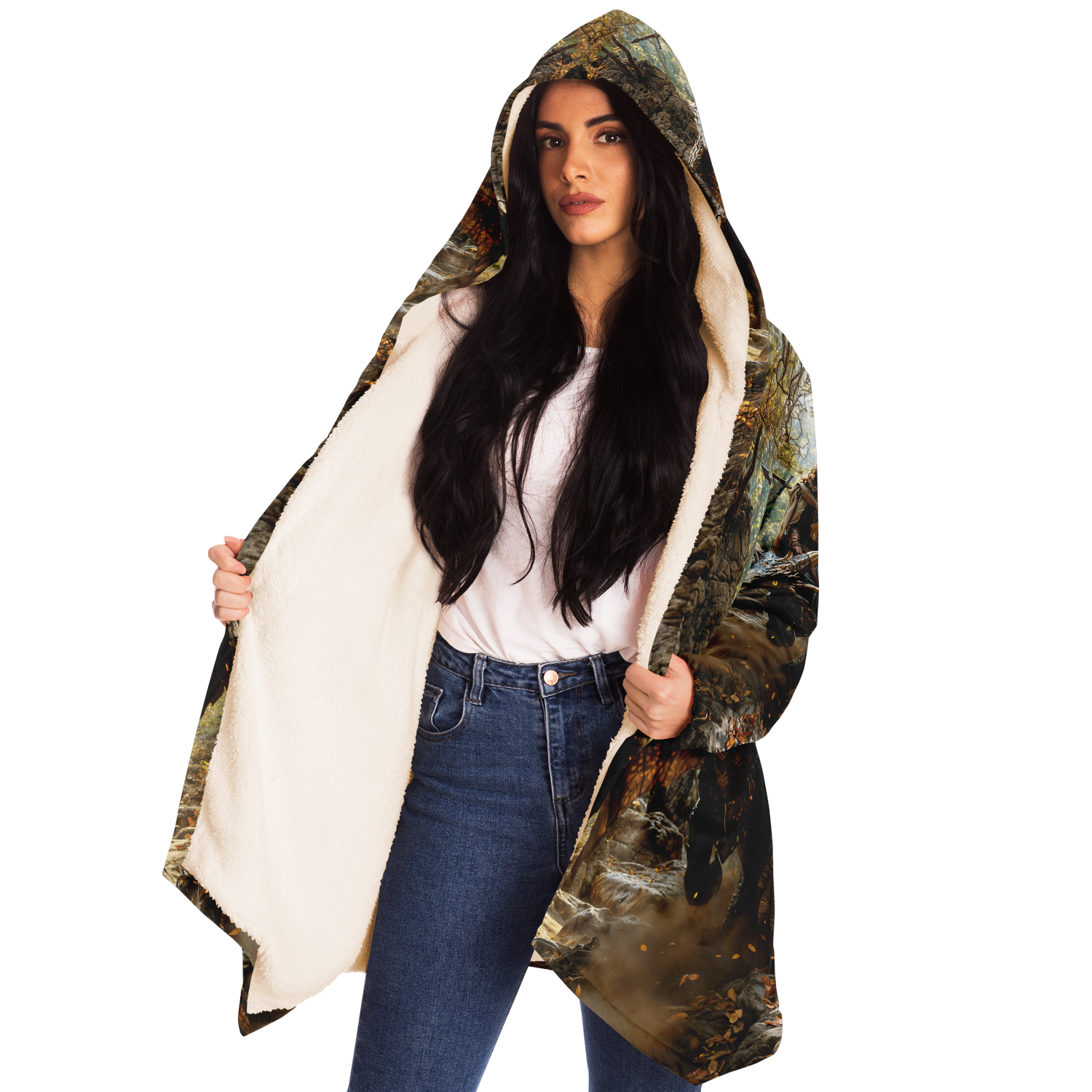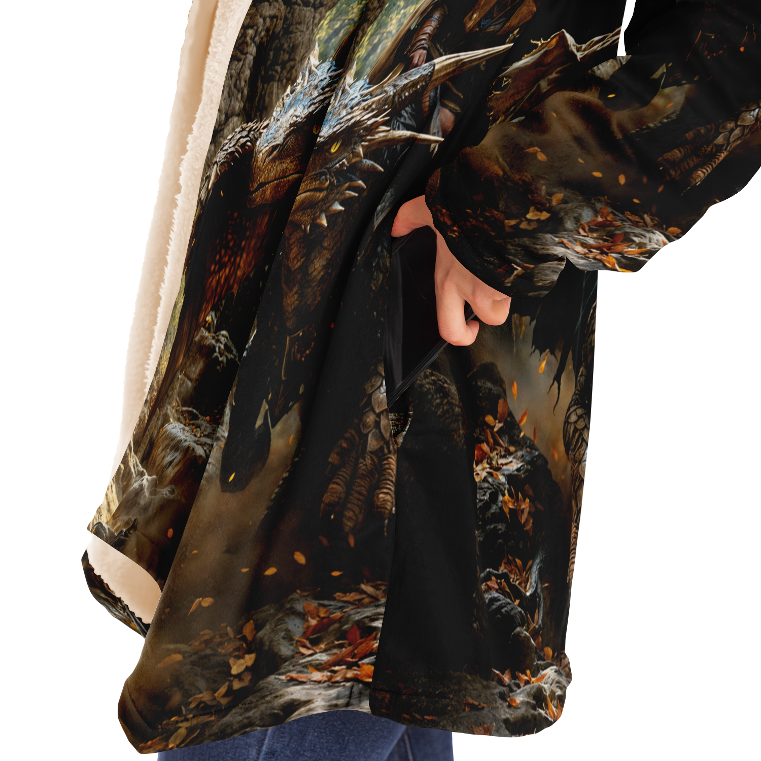 This luxurious Shortcut To Intercept cloak is made from an ultra-soft premium microfiber fleece lining. The outside is made with a micro-mink polyester fabric that allows the print to be high definition with vibrant colors. Featuring two deep side pockets to keep your belongings safe and your hands warm.