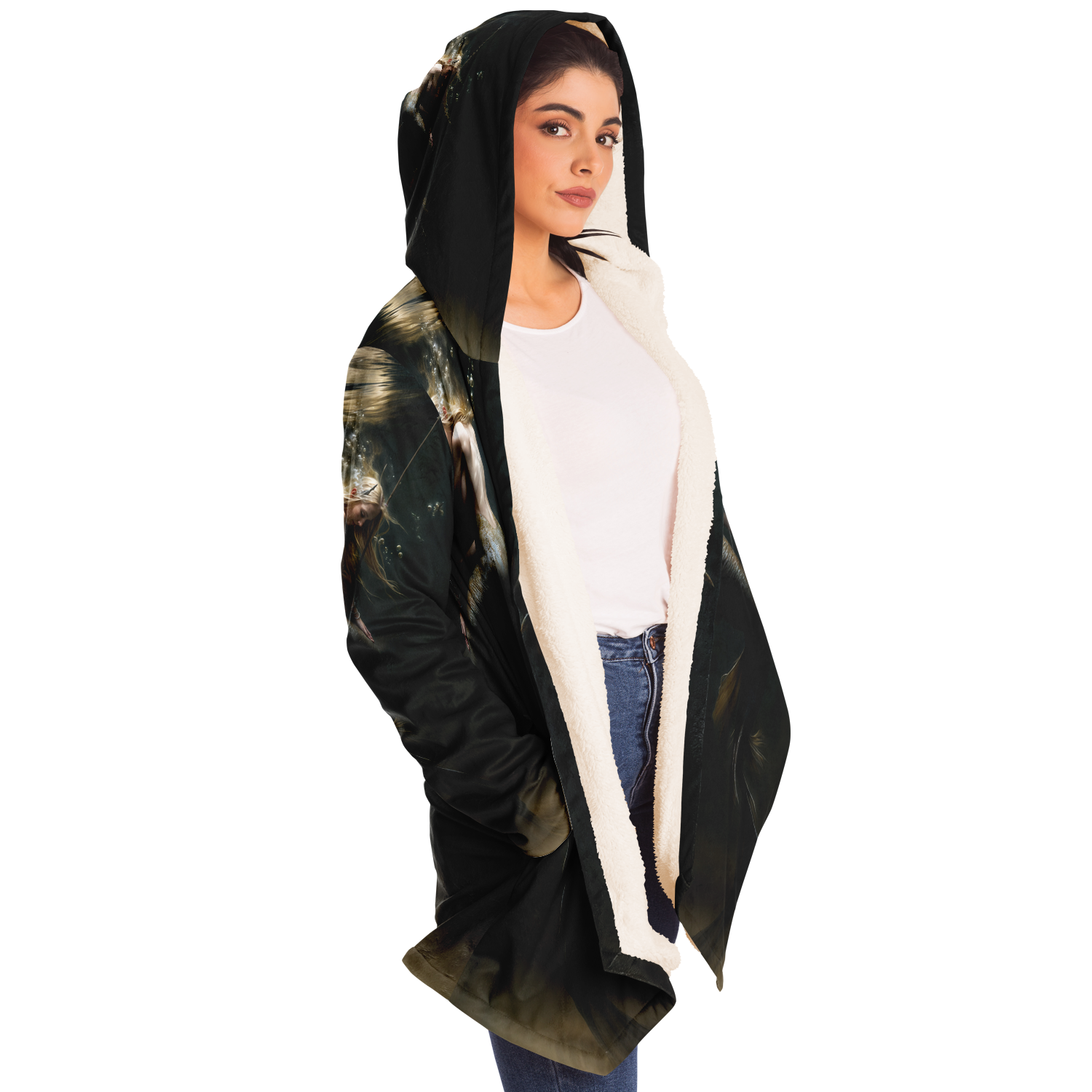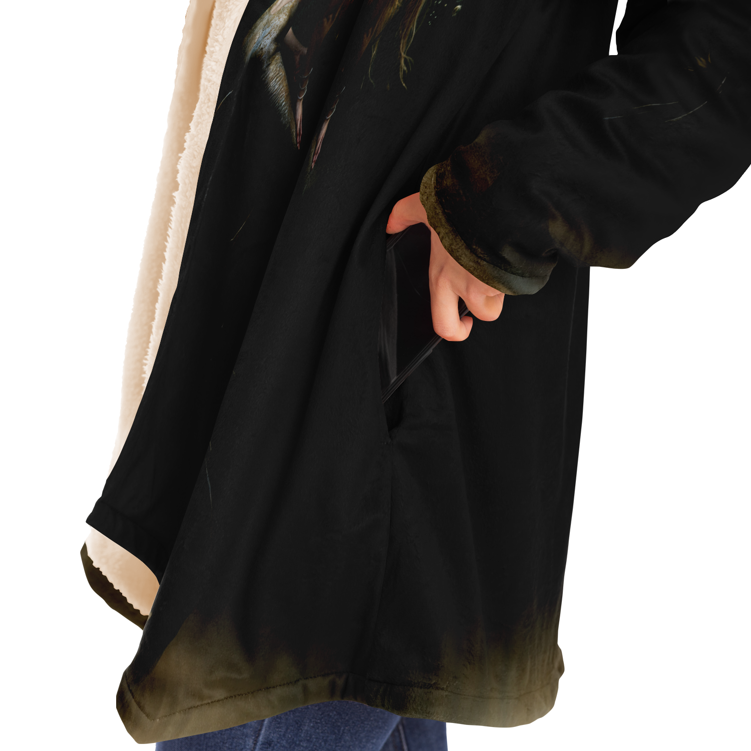 This luxurious Spearmaiden of the Deep cloak is made from an ultra-soft premium microfiber fleece lining. The outside is made with a micro-mink polyester fabric that allows the print to be high definition with vibrant colors. Featuring two deep side pockets to keep your belongings safe and your hands warm.