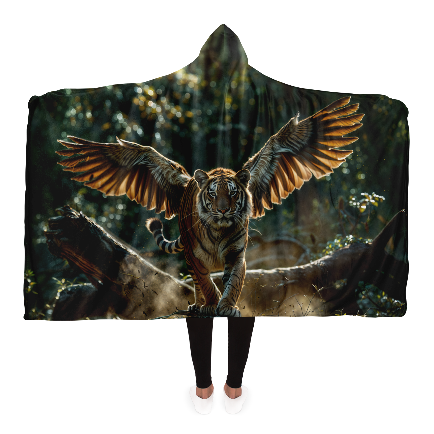Winged Jungle Tiger Hooded Blanket Sherpa